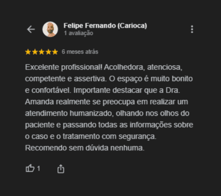Confira o que meus pacientes dizem sobre meu atendimento: